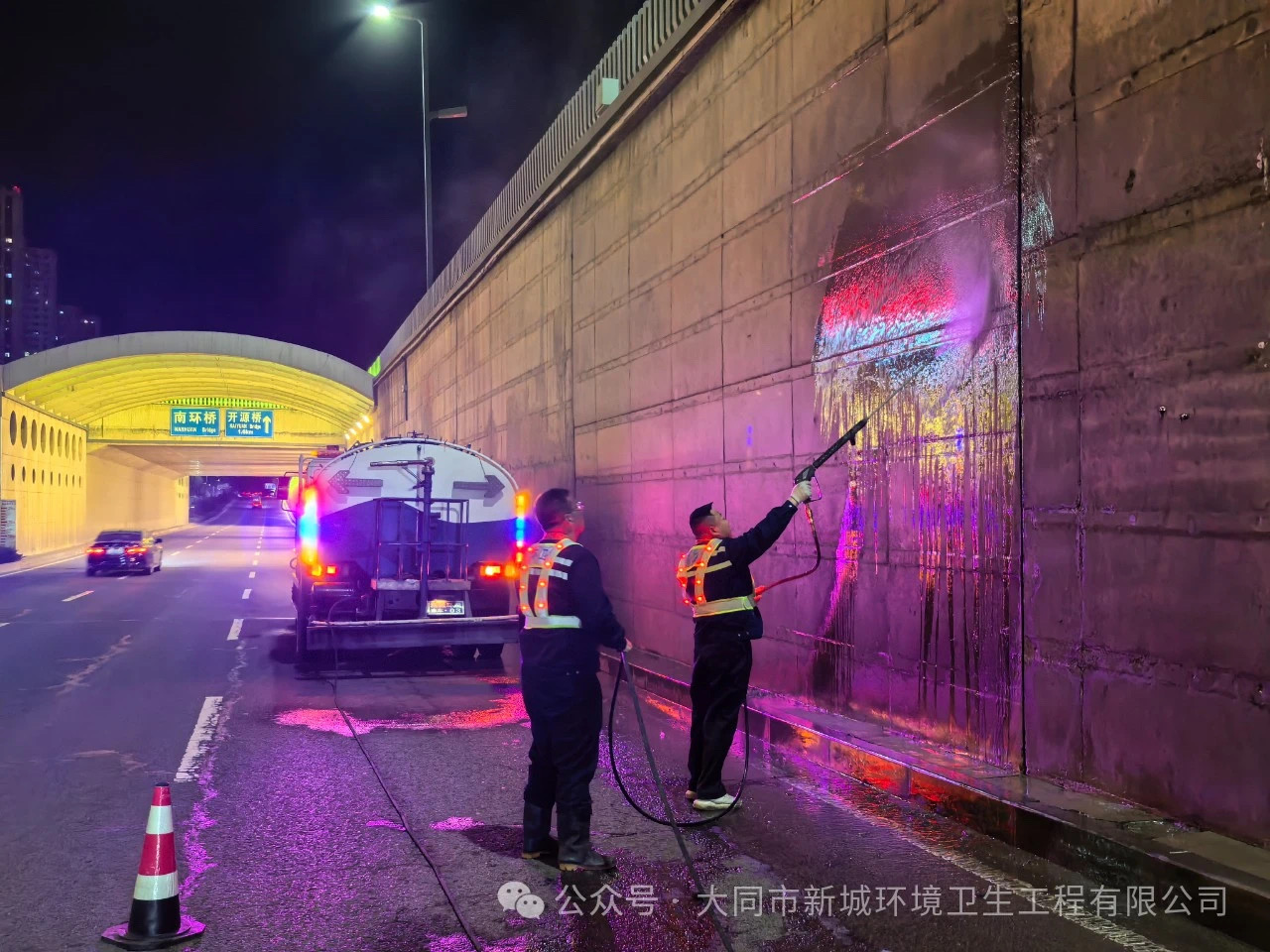 由于御河?xùn)|路快速路下穿橋洞兩側(cè)墻面污泥、灰塵附著,影響我市市容環(huán)境和旅游城市面貌,4月18日起,新城環(huán)衛(wèi)公司對(duì)御河?xùn)|路下穿橋洞開展專項(xiàng)清洗活動(dòng),在確保不影響道路交通的情況下,于每晚10點(diǎn)至次日凌晨2點(diǎn)期間,采取“機(jī)械+人工”相結(jié)合的方式,利用高壓清洗車對(duì)快速路下穿橋洞墻體進(jìn)行全面沖洗,強(qiáng)大的水壓能夠有效去除附著在墻壁上的灰塵、污泥等污染物。使橋洞一改往日的“灰頭土臉”,有效改善了通行環(huán)境,為過往車輛提供了更加舒適干凈通行體驗(yàn)。